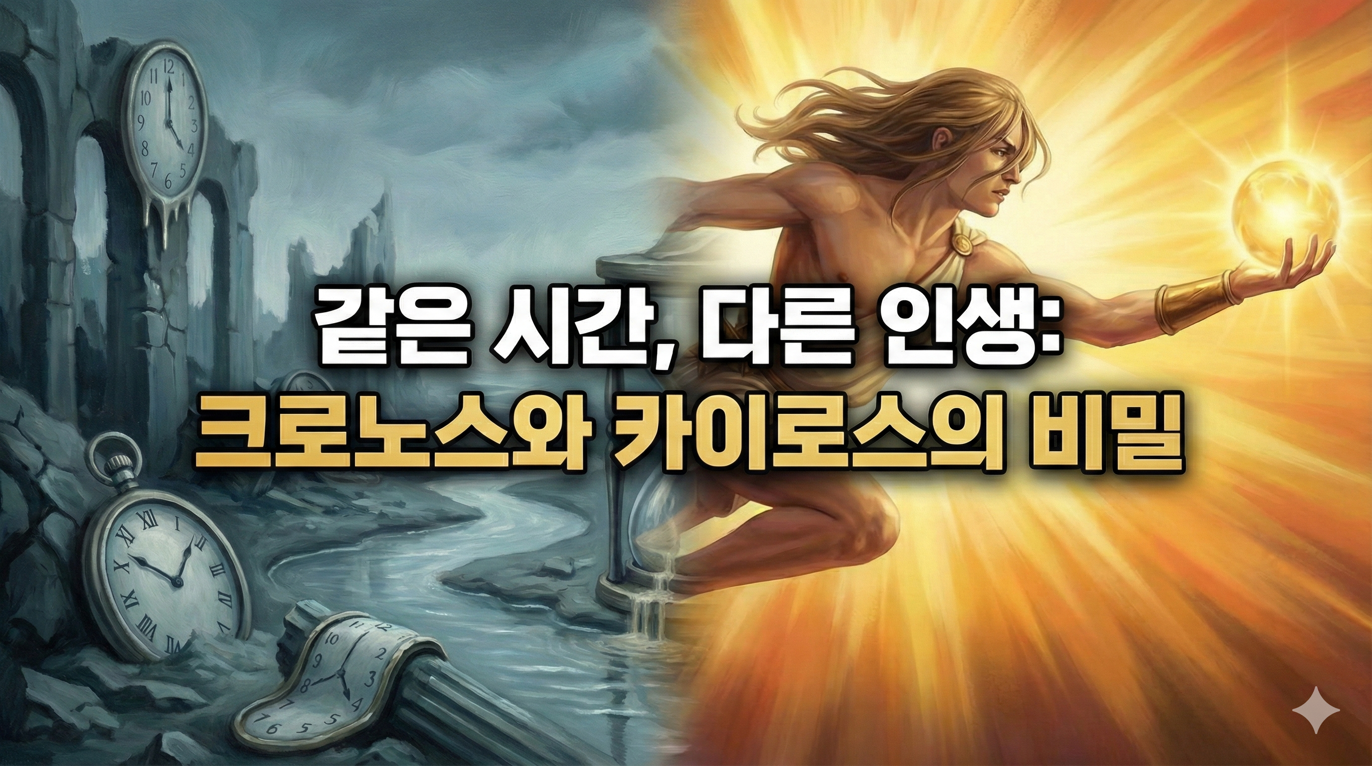 똑같은 1시간이라도 멍하니 스마트폰을 볼 때와 사랑하는 사람과 깊은 대화를 나누거나 인생을 바꿀 책을 읽을 때의 밀도는 다릅니다. 무심코 흐르던 시간(크로노스)을 나의 의지와 몰입으로 붙잡아 특별한 순간으로 만드는 것, 그것이 바로 카이로스 입니다.