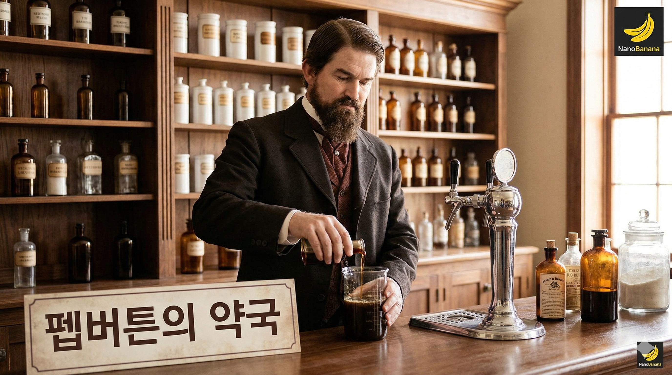 그의 이름은 '존 스티스 펩버튼' 이었습니다. 당시 미국은 만병통치약이 유행하던 시기였고, 펩버튼 또한 두통이나 신경통, 그리고 모르핀 중독 등을 치료할 수 있는 특별한 약을 개발하고 싶어 했습니다.