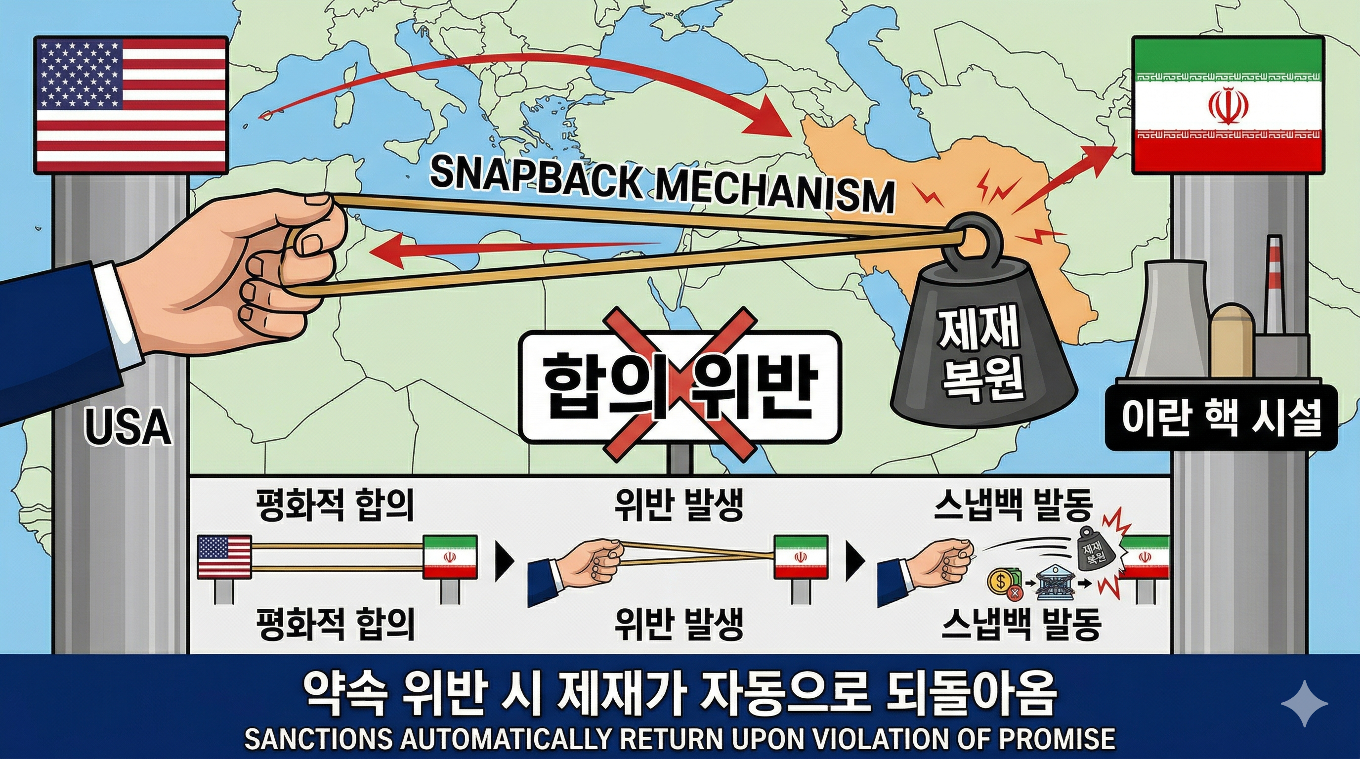 오늘은 그래서 '스냅백' 이라는 용어의 뜻과 이것이 왜 현재 미국과 이란의 갈등에서 핵심적인 역할을 하는지 쉽게 설명해 드리겠습니다.